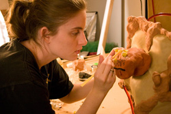 It’s true that some may feel that way, but I think those who do will be missing the point. Yes, at some level, there is an occasional wink of humor here (laughter, as they say, is the best medicine), but far from trivializing cancer, Dirty Girl really drives home the horrific invasiveness of it. The disease itself may be portrayed in a traditionally “cartoonish” format, yet the plight of the female protagonist is unexpectedly touching. I found myself breathing a sigh of relief along with her every time a piece of the cursed disease was ripped from her body. Such a project requires a lot of work, especially given the challenges of the clay animation process. Says Clary, “We worked six days a week for three consecutive weeks. We worked between 7-10 hours per day. We messed up several times and had to start over. It was a very difficult decision for me to animate the tumors because I had no prior animation experience. Claymation is very tedious but there is something messy and beautiful about it that I feel is impossible to achieve with any other art form.” Dirty Girl had its world premiere at the Tampere Film Festival in Finland, and its American premiere will be this year at MFF in Baltimore (which, it should be added, is a wonderfully receptive festival for those who have made short films). Clary plans to enter her movie in additional festivals throughout 2008, and she has received interest from several distributors. The director, who cites Tim Burton as an influence, also plans to begin production on her first full-length feature in either December 2008 or January 2009. Be on the lookout for this incredible short film, and visit the official website for more information. This is, hands down, one of the best and most compelling shorts I’ve ever had the pleasure of seeing, both in terms of style and substance. “I hope that Dirty Girl provides people with an alternative view of cancer and surgery,” Clary concludes. I think it’s safe to say that her mission has been magnificently accomplished.